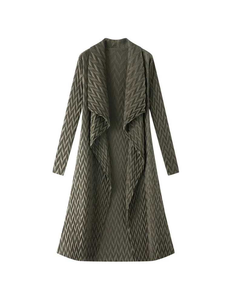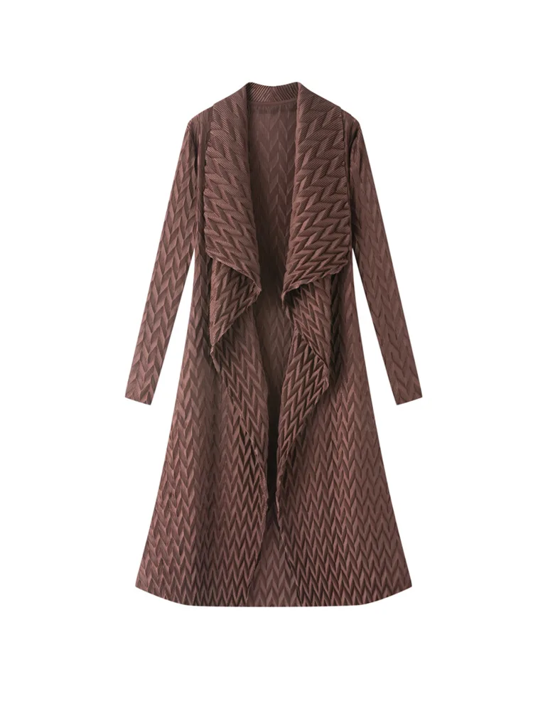 Miyake Vintage Zipper Pleated Lazy Loose Long-sleeved Elegant Lapel Trench Coat Women's Spring New Arrival Medium-length Fleece